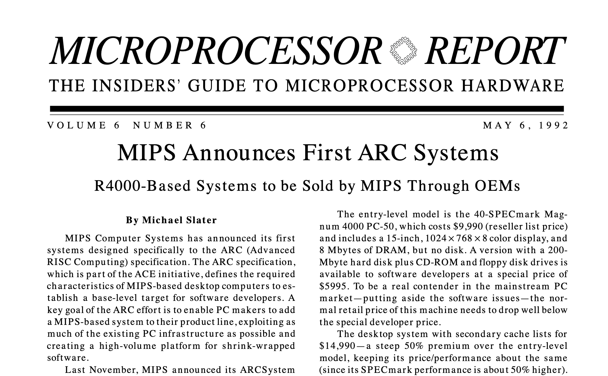 MIPS Magnum 4000 is derived from the Microsoft Jazz development platform which was internally used to develop Windows NT (3.1). Then, it was ported to other CPU architectures incl. x86. Windows on MIPS was not successful but it was an important part of the history.